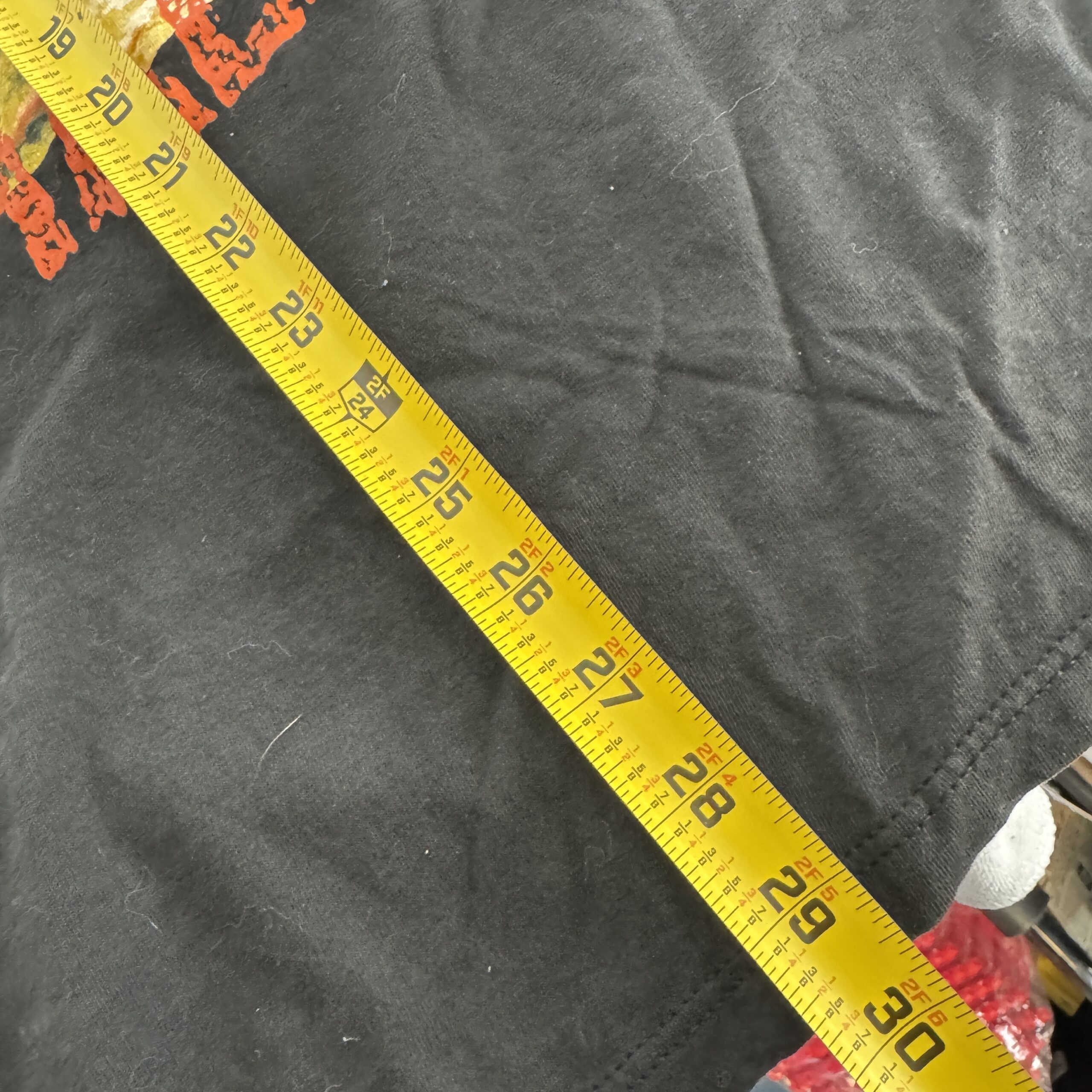 There are a few small holes, notably near the collar/neckline and in the underarm area (see detailed photos). They’re not structural issues—they’re the kind of “battle scars” collectors love and grunge stylists embrace. Call it built‑in ventilation and authentic character rather than damage. - The Graphic: